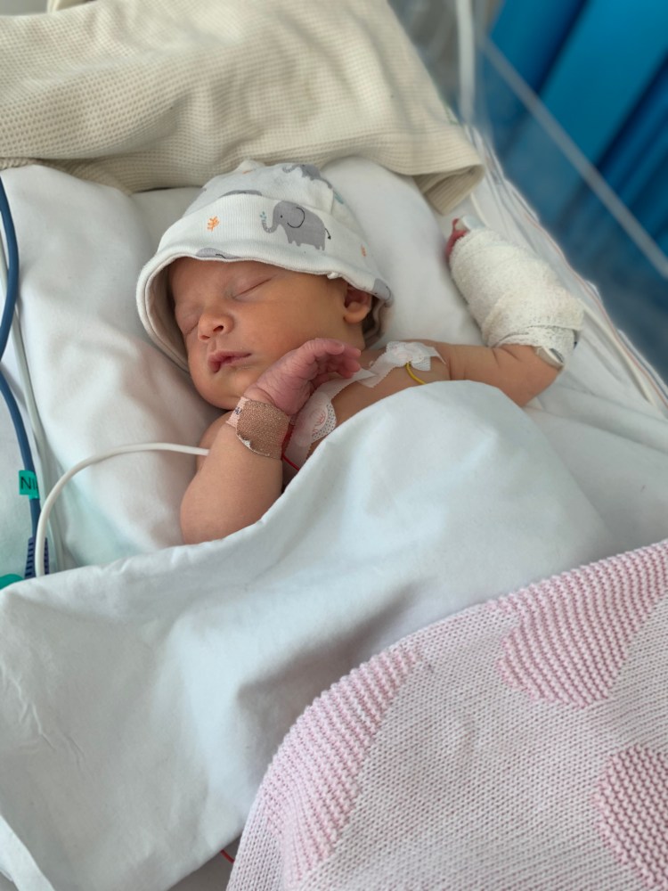 Our beautiful little girl Etta Grace Libi Woolford was born at 00.01 on the 26th November 2019 with a good set of lungs on her! After a few cuddles she was taken up to NICU to be checked over and to be started on a special drug that would keep her healthy until her first surgery. We chose her middle name ‘Libi’ (Leebee) as it is Hebrew for ‘my heart’.