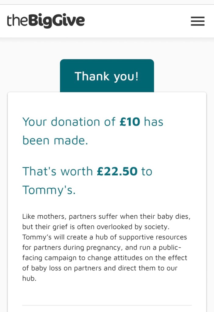 We supported Tommy’s as they are using their money raised to create resources for dads and partners during pregnancy and when facing baby loss- of course a matter very close to our hearts! It was very hard to choose though- too many worthwhile charities and too little time and money!!